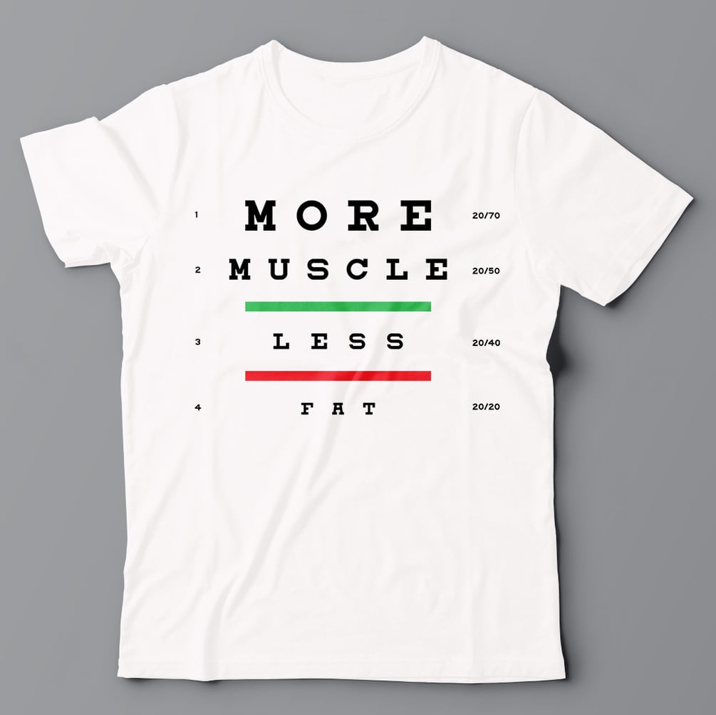 More Muscle Less Fat Eye Chart Short Sleeve Tee $30 + shipping.